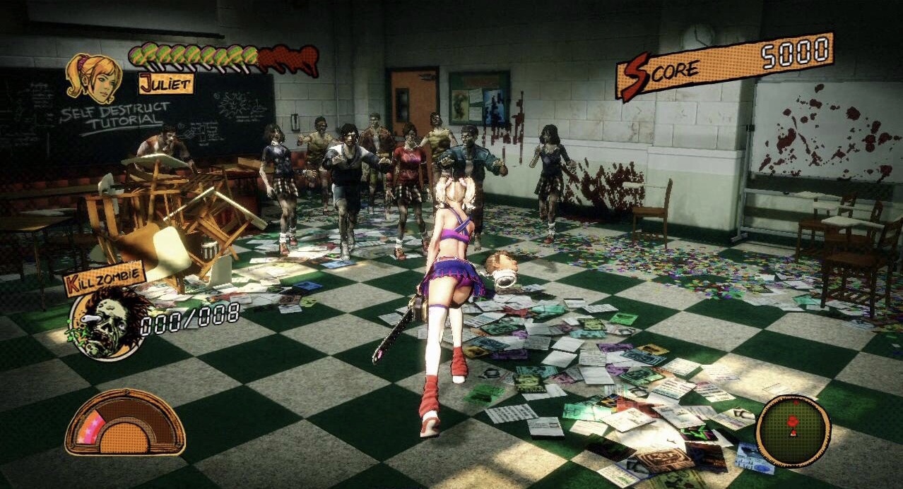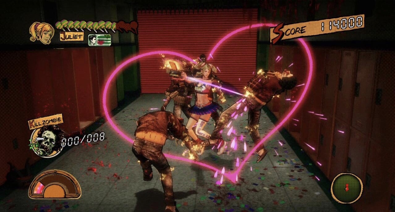 Players encounter bosses with the likes of Zed, Mariska, Vikkie, Lewis Legend, Josey with Killabilly arguably being the toughest one of them all. The visuals for Lollipop Chainsaw looked very impressive mainly since the game utilized the Unreal Engine 3 for the PlayStation 3 & Xbox 360. The gameplay for Chainsaw Lollipop was pretty solid and there was a fair amount of creativity that went into its development. Players were allowed to earn gold & platinum medals by engaging in activities such rescuing classmates and destroying enemies. The medals collected could be used to unlock new moves and attires for Juliet Starling in addition to obtain artwork and music in relation to the game itself. The health bar meter players are given can be replenished by collecting lollipops throughout the game. Also, Nick who Juliet saves from becoming a zombie by cutting of his head and using a magic ritual on him to maintain his life had health bar as well.