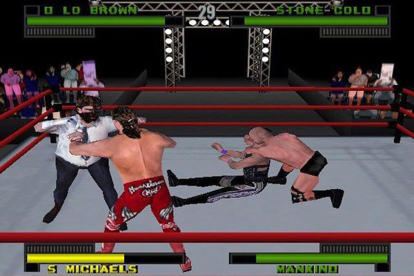 Unfortunately, the WWF Attitude game did not have grudge match promos in Career Mode similar to WWF Warzone in Championship Mode; but Acclaim Entertainment did everything they could to try and make up for it. The WWF Attitude game also had new game modes such as: King Of The Ring and Royal Rumble which was not featured in WWF Warzone in ’98. WWF Attitude not only featured full character entrances players had the ability to make the gameplay as violent and edgy as they wanted. If players wanted excessive blood and profanity during matches it could be done by making changes in the game’s option mode. Also, players had more extensive options in create a wrestler mode in WWF Attitude compared to the Warzone game from ’98. People had the opportunity to select and fight against some of the most popular superstars of the Attitude era from ’98-’99. The game included superstars such as: Stone Cold, The Rock, Undertaker, HHH, Mankind, Kane and more; along with countless match types which made for countless hours of gameplay. Even though, the gameplay in the WWF Attitude game paled in comparison to the likes of WcW/nWo Revenge and WWF Smackdown from ’00; it was still a memorable 3D game that hardcore fans of pro wrestling were fond of during that time period.