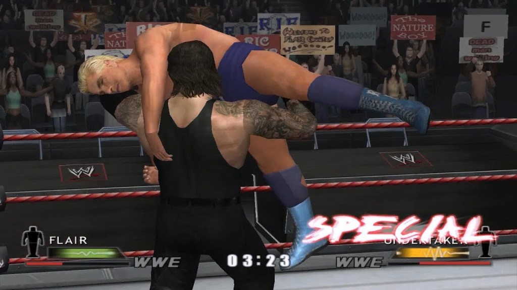 The story mode in Day of Reckoning allowed players to win the Tag-Team titles on whatever show they were on along with the I.C. or the United States title. Also, by the time players got to WrestleMania they had the opportunity to challenge Triple H or the Undertaker at WrestleMania 20 for the WWE or the World Heavyweight title. The roster of WWE Day of Reckoning was stacked with top stars from ’04 including Triple H, The Undertaker, Shawn Michaels, Rob Van Dam, John Cena, Randy Orton, Chris Jericho, Batista, Kurt Angle, Rey Mysterio, Eddie Guerrero, Trish Stratus, Booker T and more. WWE Day of Reckoning also had legendary superstars like The Rock, Bret Hart, Roddy Piper, Andre The Giant and others. WWE Day of Reckoning featured a variety of different match types including Triple-Threat, Fatal 4 Way, Hell in a Cell, Cage, Ladder and TLC which added to its overall replay value. This game also featured blood and Bra and Panties Matches with the Divas something you won’t see in today’s WWE 2K games. WWE Day of Reckoning was one of the few hidden gems in relation to pro wrestling games to have emerged from the Ruthless Aggression era during the 2000’s. Unfortunately, WWE Day of Reckoning was overshadowed by the SvR series on the PlayStation 2 during the mid 2000’s and we only got one sequel on GameCube following 2004.