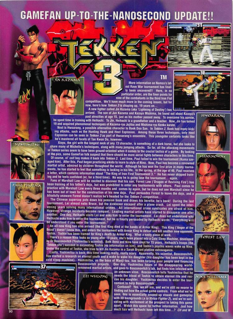 The Tekken series has been around for three decades and since its inception back in ’94 the franchise has become one of the biggest names within the gaming world today. All of the Tekken games that we got between ’94-’99 including Tekken, Tekken 2, Tekken 3 along with Tekken Tag Tournament are all considered to be classics today. The very first Tekken game resembled that of Virtua Fighter while the second Tekken game from ’95 ended up being far better than its prequel in terms of overall quality. The soundtrack for Tekken 2 was arguably the best in the entire series and the roster of characters was limited but loaded with larger than life characters. Tekken 2 was the game where characters like Kazuya Mishima, Heihachi Mishima, Paul Phenoix, Nina Williams, Julia Chang, Marshall Law and Jun Kazama got to shine. Tekken 2 appeared on the PS1 in ’96 and ended up becoming one of the best selling video games for the 32-bit console reaching around 5.7 million copies in sales. Despite, how great Tekken 2 was in ’95-’96 it was not nearly as addictive as the iconic Tekken 3 game which appeared in arcade centers in ’97. Tekken 3 has better looking stages, graphics and had more of a edgy vibe to it compared to Tekken 2 which added to its appeal. Tekken 3 was also the video game where iconic characters like Jin Kazama, Ling Xiaoyu, Eddy Gordo and Hwoarang made their debuts. The PS1 port of Tekken 3 was almost as good if not better than arcade version because of the additional game modes it featured. The PlayStation version of Tekken 3 had modes like Tekken Ball, Tekken Force and Theater Mode along with the standard arcade and versus modes and felt more challenging than it should have been. Tekken 3 ended up becoming the fifth best selling video game for the PS1 reaching around 8.3 million copies in overall sales. Tekken 3 is highly regarded as the best 3D arcade fighting titles of the 90’s decade. Tekken 3 is also seen as the game that really help put the series itself on the map in relation to appealing to casual gamers alongside Tekken 2. Tekken Tag Tournament game from ’99 was legendary because it was one of the first major 3D tag-team fighting games ever. Despite, not selling nearly as much as Tekken 3 did in the late 90’s the game had a stacked roster of characters and had a level of appeal that standard fighting titles could not match during the 90’s decade.